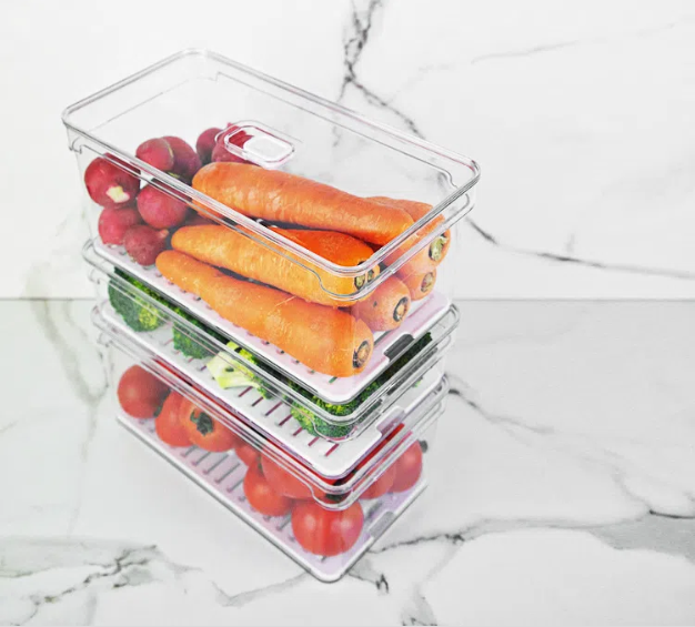 Empilhe, encaixe e enxergue facilmente os alimentos armazenados na geladeira, mantendo tudo em ordem.