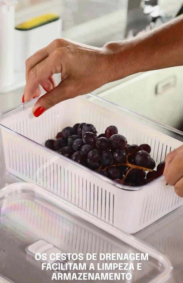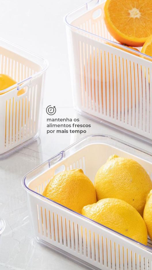 Organizador De Geladeira Slim c/ Trava e Drenagem novo padrão de transparência na organização da sua geladeira.